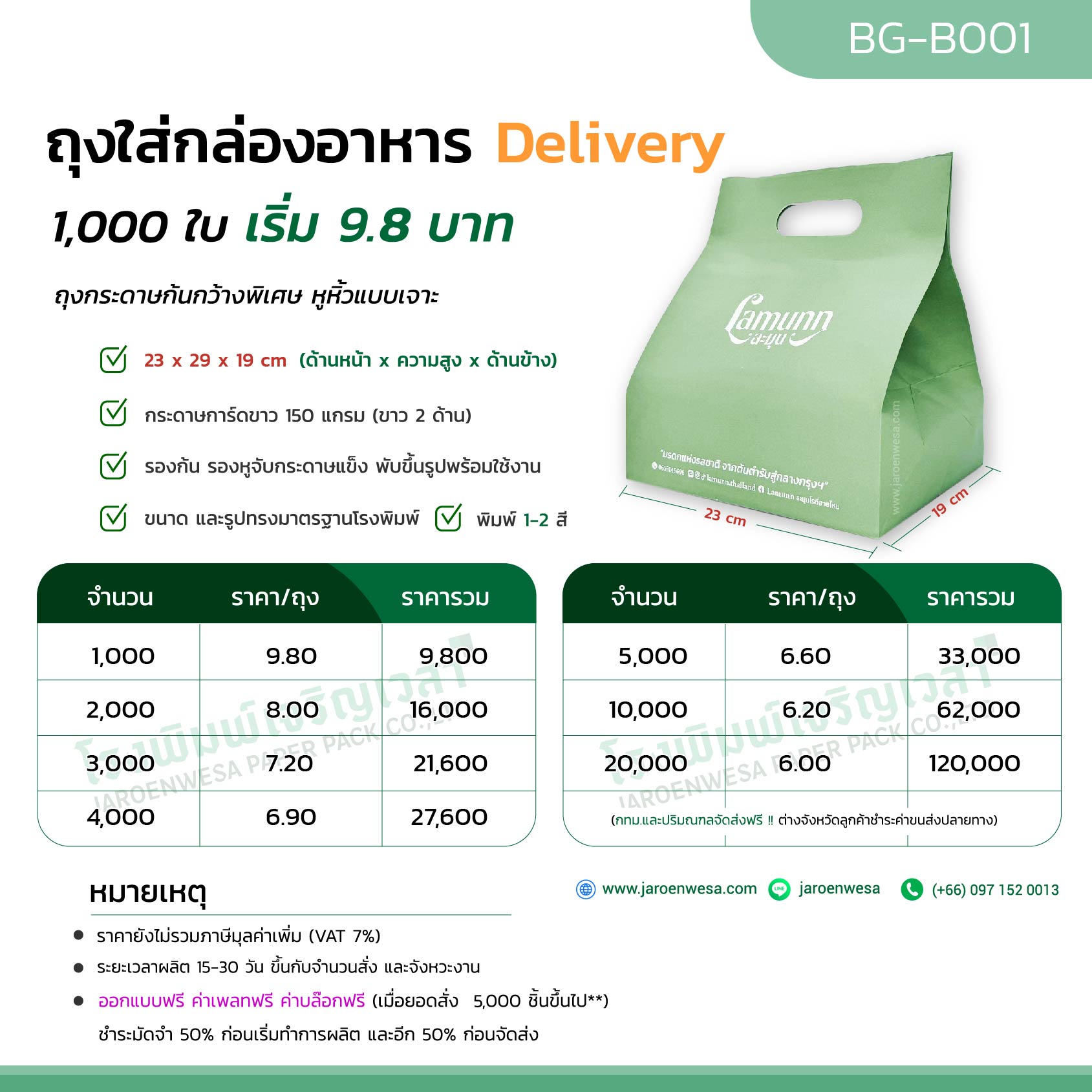 ถุงกระดาษการ์ดขาว 150 แกรม ผลิตขั้นต่ำ 1,000 ใบ