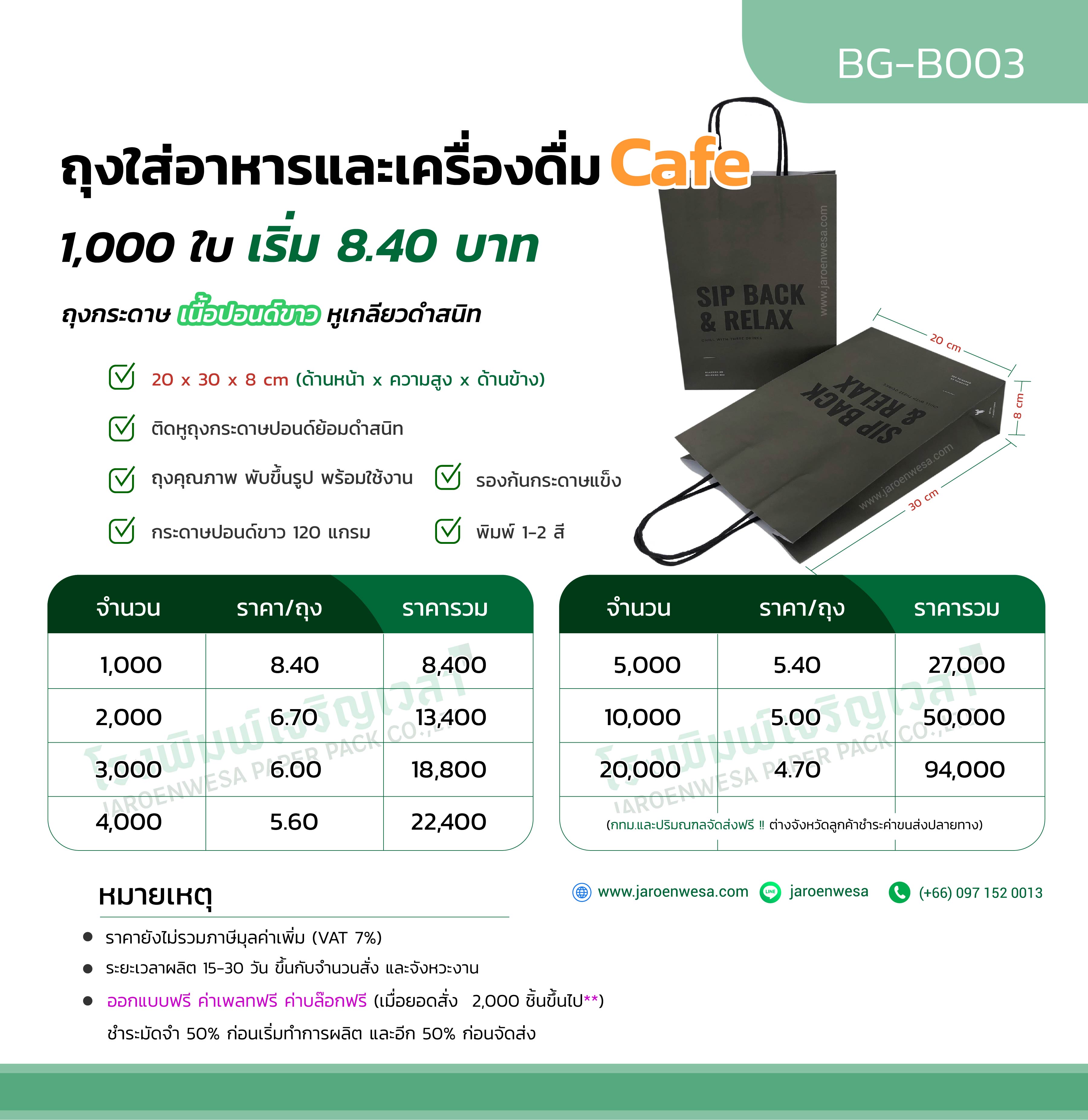 ถุงกระดาษปอนด์ 120 แกรม พิมพ์ 2 สี